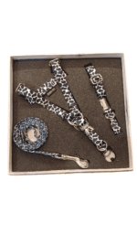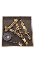 پک قلاده vip شامل (قلاده کتفی ،گردنی به همراه لید) تمام اتصالات این کار فلزی ودرجه یک مخصوص سگ وگربه