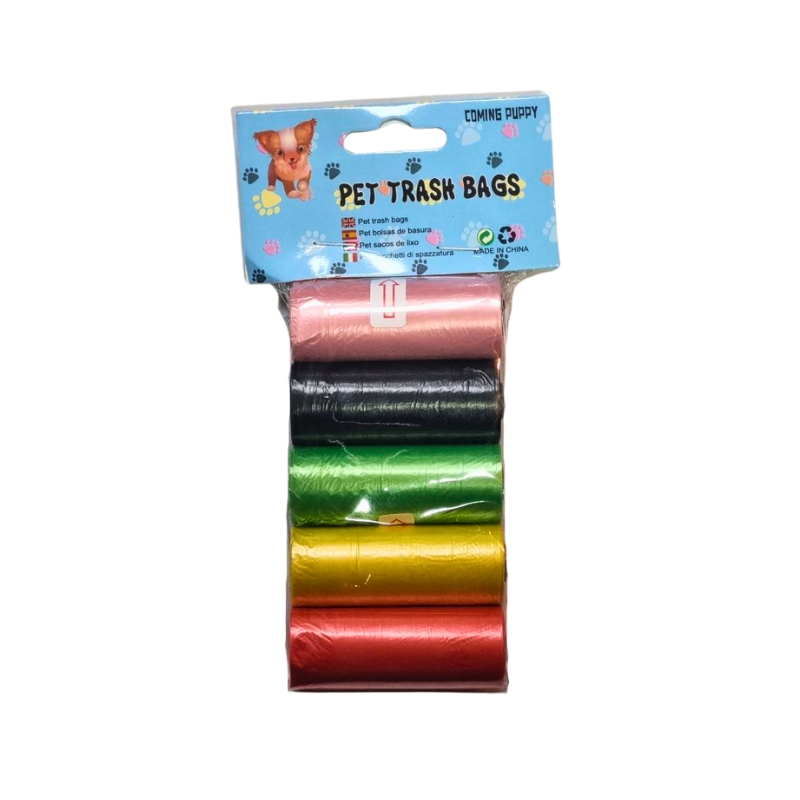 کیسه جمع آوری مدفوع حیوانات یک وسیله ضروری برای حیوانات خانگی مانند سگ، گربه، خرگوش و… می باشد. این محصول یک وسیله کاربردی برای جمع آوری فضولات حیوان به خصوص در هنگام پیاده روی به حساب می آید. در هر بسته ی این محصول 5 رول کیسه رنگی قرار دارد که دارای خط برش می باشند.